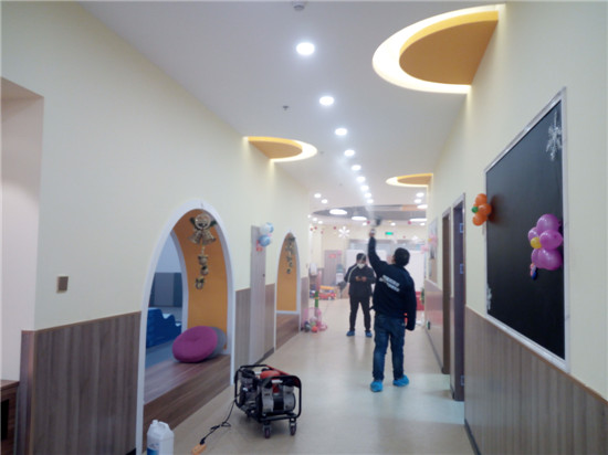 位于西安鳳城十路的紅黃藍親子樂園是一家專業的親子教育機構,對于園區的空氣質量家長們十分關心,特點選擇了西安除甲醛公司中較為知名的新居邦環保科技進行處理,施工結束當天室內空氣異味就得到顯著改善,目前已經順利通過第三方CMA實驗室檢測機構驗收,下面是部分施工照片: