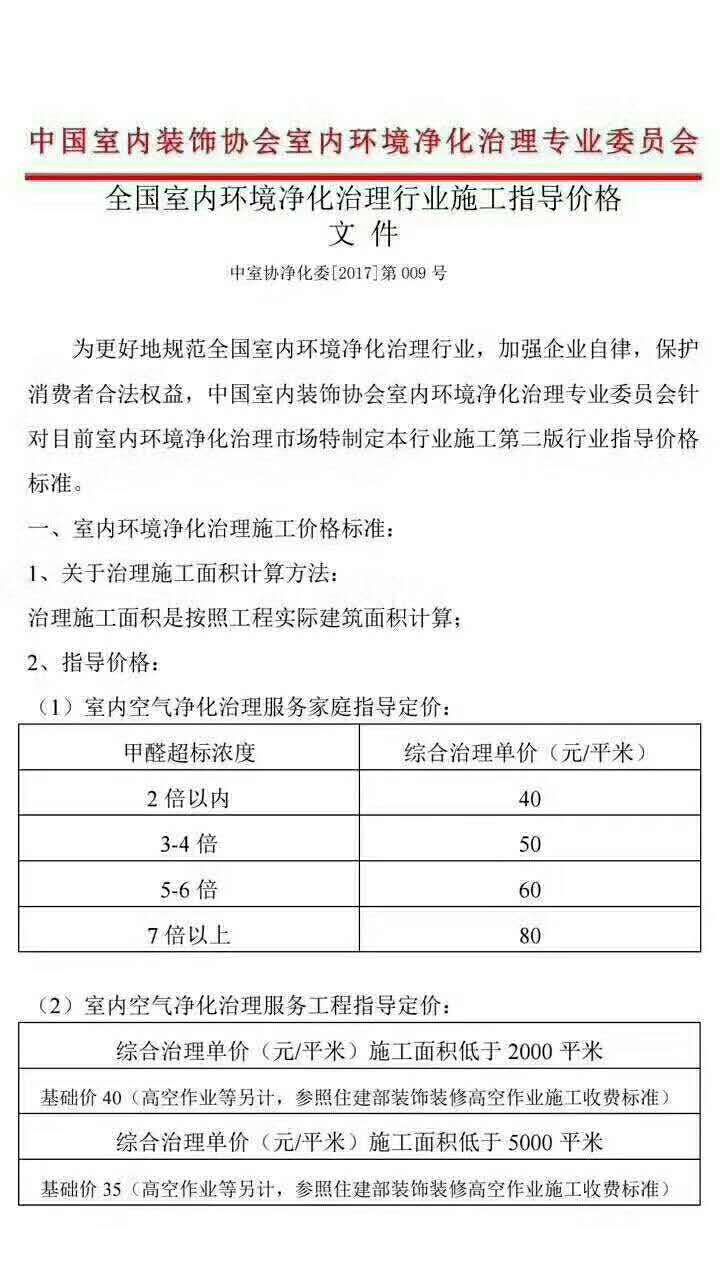 下圖是全國室內環境凈化治理行業施工指導價格文件: