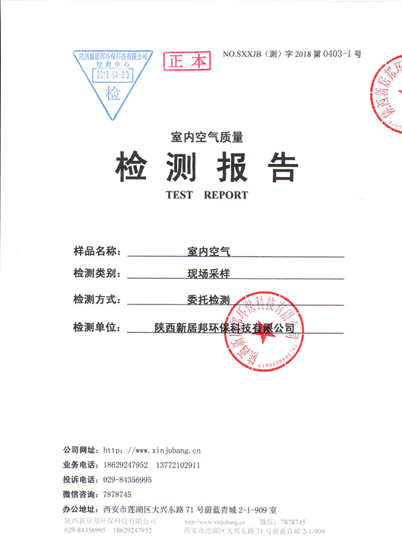 正規專業甲醛檢測公司出具的檢測報告