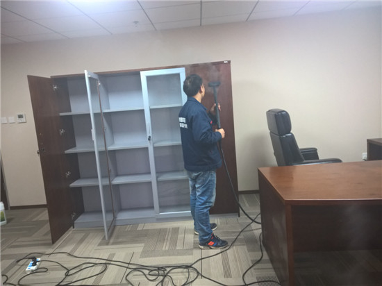 西安銀行高新總部辦公大樓室內空氣凈化,辦公室內地毯、顆粒板辦公家具是甲醛釋放重點。公司采取高分除醛凈味技術快速清除家具中的甲醛殘留。以下是除甲醛施工現場: