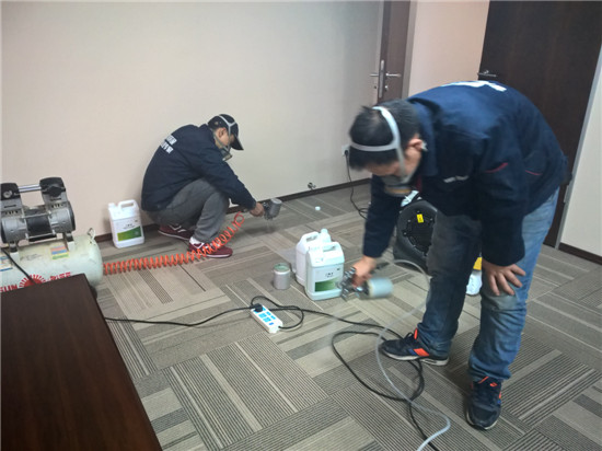 我公司施工人員對化纖地毯進行VOC清除除異味作業