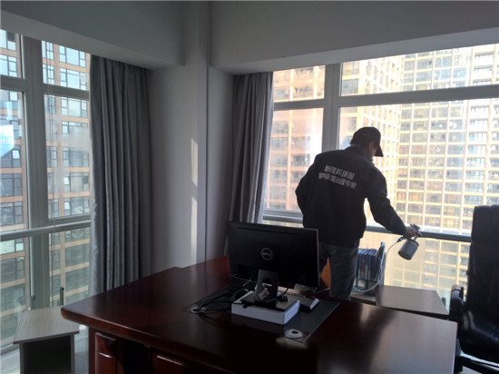 位于高新唐延路旺座國際的力邦醫藥集團辦公室升級換代,將旺座國際、瞪羚谷創業中心的辦公室進行了全面的家具更換裝修處理,新更換的仿紅木類的高密度板家具油漆刺鼻異味濃烈,西安除甲醛公司新居邦環保因專業技術領先服務能力突出獲得集團領導認可,承擔本次除甲醛空氣凈化工程,整體甲醛治理面積約1300平方,以下是施工現場部分照片